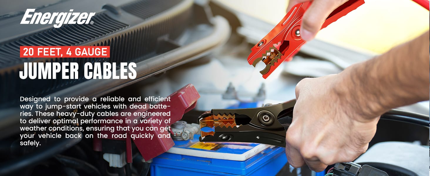 The Energizer 20 Feet Jumper Cables are designed to jump-start dead or weak batteries efficiently. These 4-gauge, 20-foot booster cables are ideal for trucks, SUVs, full-size cars, mid-size cars, and small/compact cars.