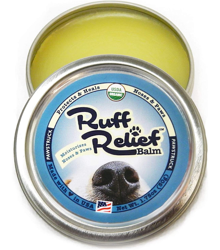 At last, a Paw Balm that is safe for your animal friends! Beneficial for their dry nose, paws, elbows and wrinkles, this easy to apply salve will leave their skin smoother than ever. Quickly relieving discomfort caused by cracked skin, Ruff Relief Balm is also great for maintenance, just rub it in daily! Using only certified USDA organic ingredients, you can trust that this product is of the highest quality and absolutely unscented. Your pet will thank you!