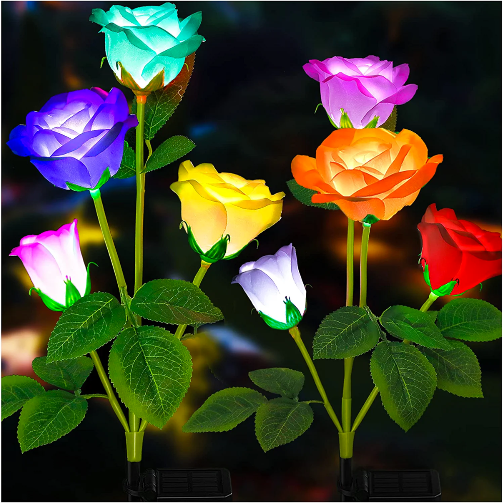These solar flower lights come in a variety of colors, so you can choose the perfect set for your garden. They also make great gifts for friends and family!