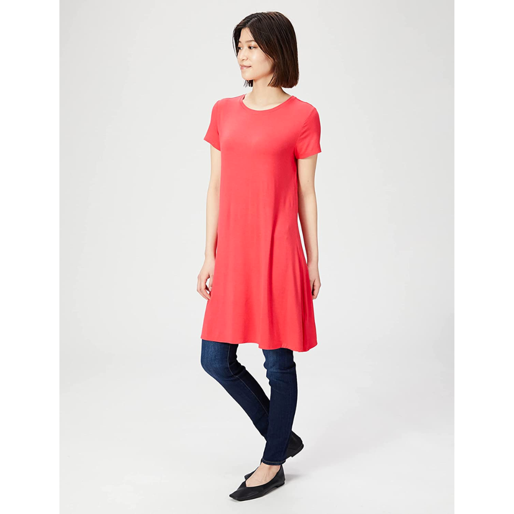 Introducing the new and improved Amazon Essentials Women's Short-Sleeve Scoop Neck Swing Dress: designed with you in mind! This dress is perfect for any occasion, featuring a scoop-neckline and a drape that effortlessly hugs your curves. Our playful swing style fits like a glove, giving you perfect coverage while still making a statement. In short? You'll feel comfortable yet confident enough to take on the world – or at least your day out! Whether you're headed to brunch, out for coffee with friends, or just running errands around town, this stylish piece is sure to be a conversation starter. Plus, it's versatile enough to mix and match with accessories for different looks throughout the week. So what are you waiting for? Get ready to start turning heads in Amazon Essentials Women's Short-Sleeve Scoop Neck Swing Dress!