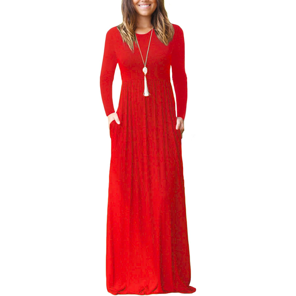 Introducing DEARCASE Women's Long Sleeve Maxi Dress, the perfect choice for your sophisticated look. This floor-length maxi dress is designed with long sleeves that make it perfect for any season. It has a high waistline, accentuating your curves and making you stand out in a crowd. Its stretchy material makes it comfortable to wear all day long, while its double side pockets store your small daily necessities right where you need them. You'll be looking like an absolute goddess no matter what season you're in! Add this timeless piece to your wardrobe and elevate your style with elegance and sophistication. "Dress smart, stay stylish" - the motto of every fashionista!