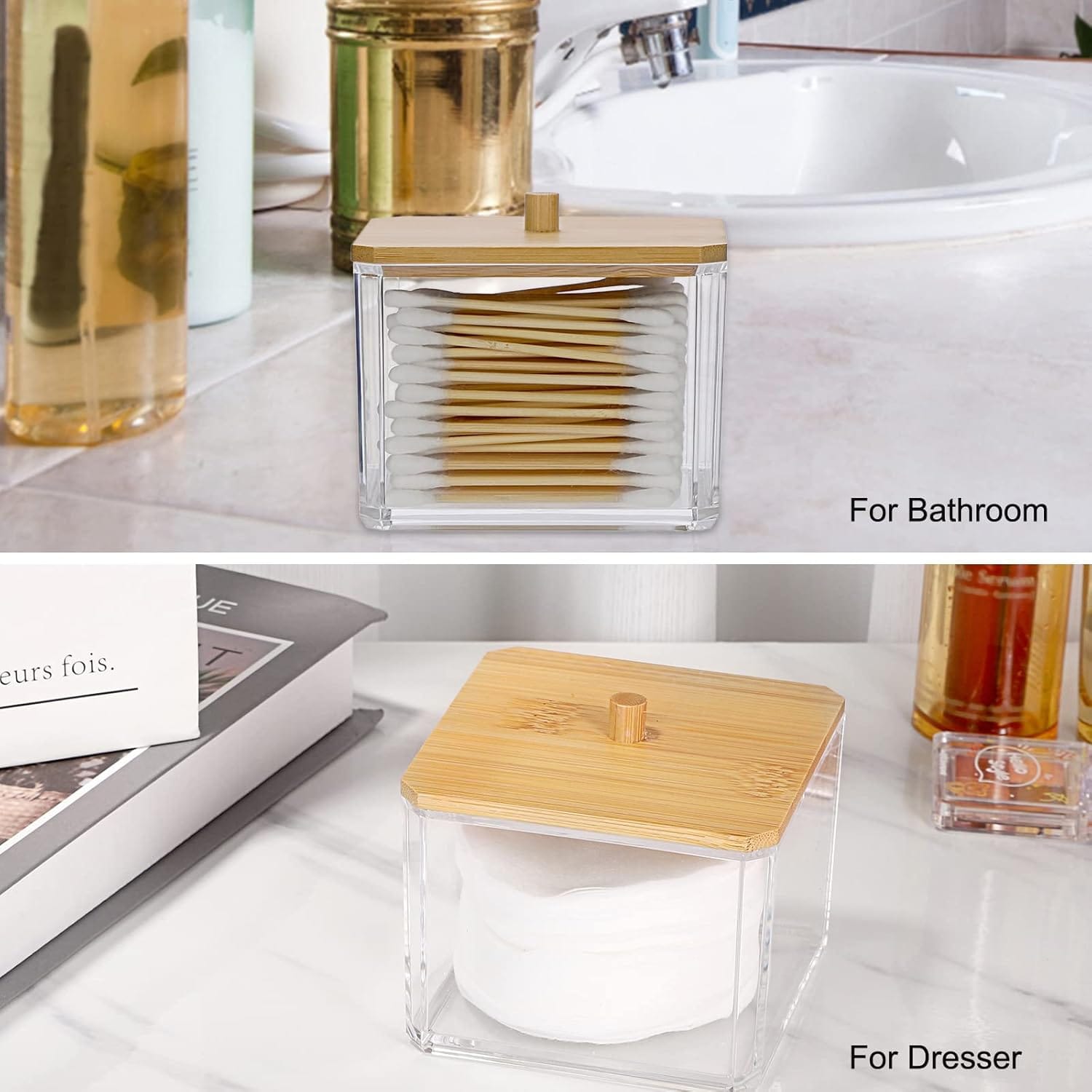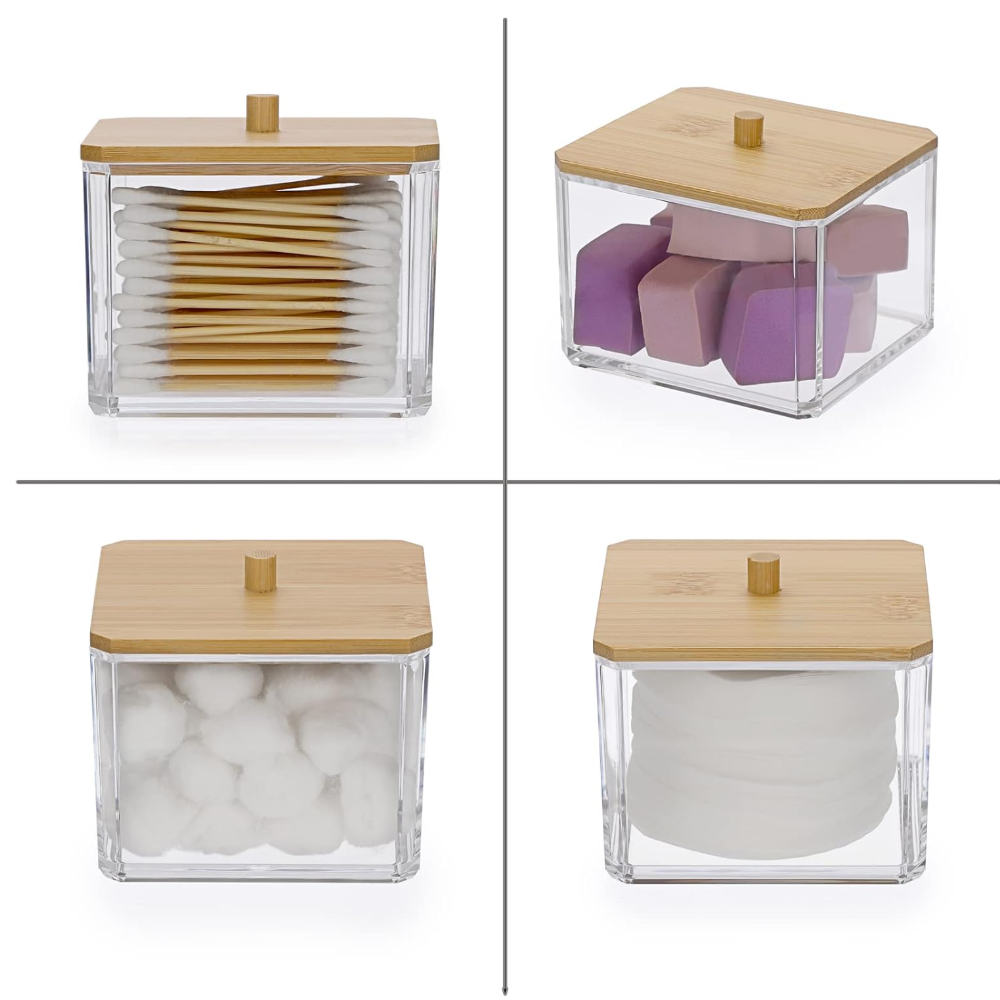4 Pack Acrylic Qtip Holder Dispenser for Cotton Swabs, Balls, Pads, Floss Picks