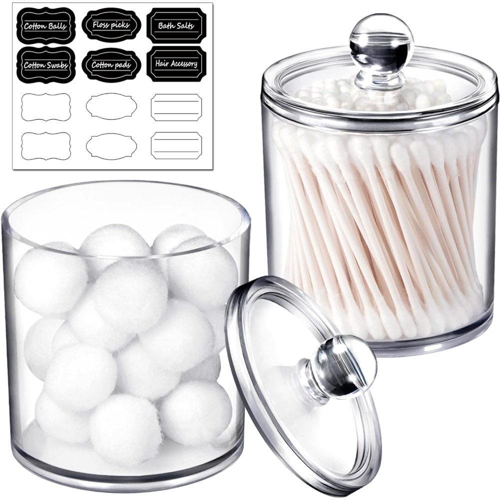 SheeChung 2 Pack Qtip Dispenser Apothecary Jars Bathroom with Labels