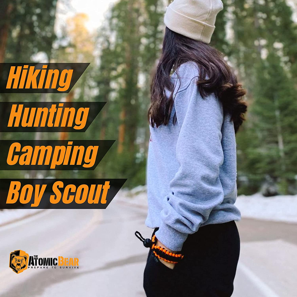 If you're the type who likes to be prepared, no matter what situation Mother Nature throws your way, then we have just the thing that'll get you ready and raring to go: Atomic Bear's Paracord Bracelet (2 Pack)! That's right, for only one low price you get two bracelets packed with awesome survival essentials like fire starters and compasses — truly a great deal. Plus, it comes in two colors guaranteed to fit any style, from the subtle camouflage of black or the hard-to-miss orange. With features like emergency whistles, paracord strong enough to build a shelter or splint, and more, you'll never feel lost when you find yourself in a tight spot! So, brave the wilderness in fear-free fashion with Atomic Bear's Paracord Bracelet (2 Pack)!