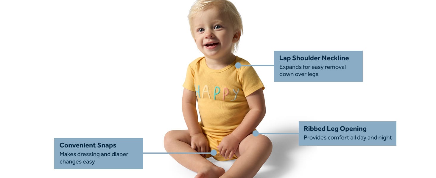 Soft and breathable, our baby clothes are made of 60% cotton and 40% polyester. This blend is perfect for your baby's sensitive skin! These baby bodysuits stretch easily as your little one moves. They also provide the perfect warmth, keeping your baby comfortable all day.