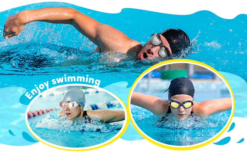 With anti-UV lenses, these swim team goggles efficiently protect your eyes from strong sunlight and bright lights. They reduce glare and visual distortion, making them ideal for summer, beach, indoor, and outdoor swimming.