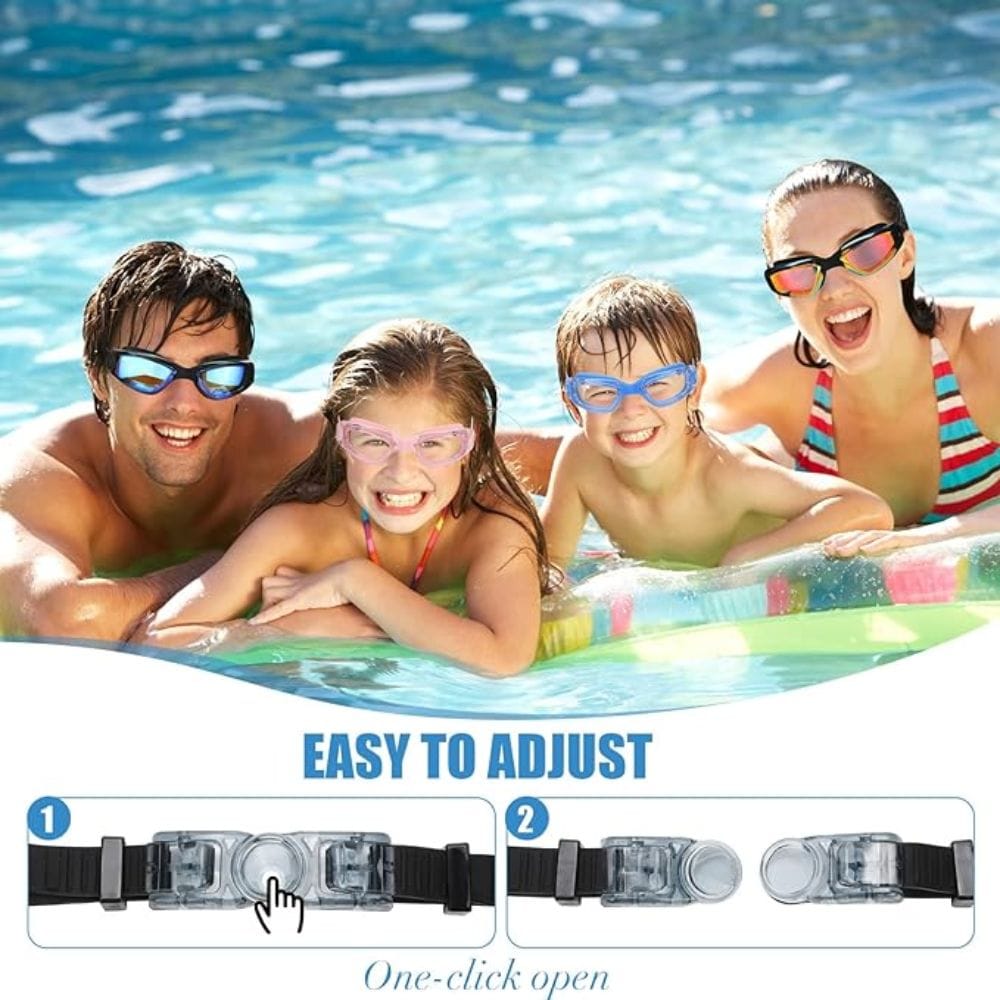 The lenses are coated with UV protection, effectively blocking direct sunlight, increasing clarity underwater, and reducing glare. These features ensure that your children or family can fully enjoy swimming.