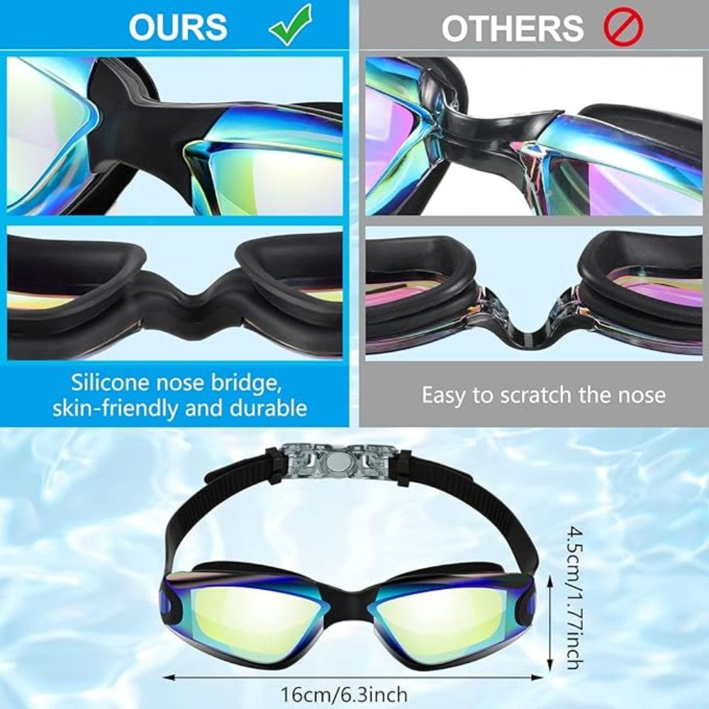 Designed with an advanced anti-fog coating, these swimming goggles minimize fog formation. This feature not only protects your eyes but also provides a clearer and broader underwater visual experience.