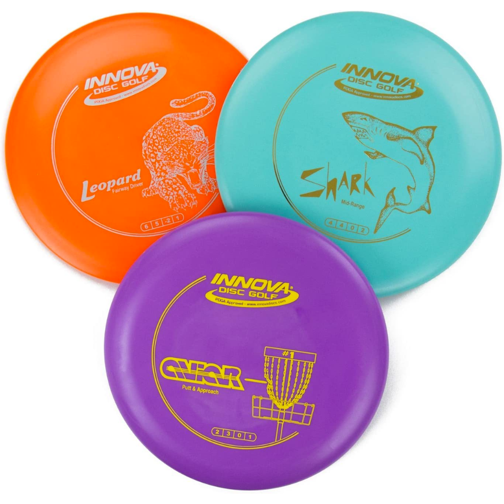 Attention Disc Golf Beginners: Ready to take your disc golf game to the next level? Get the Innova Disc Golf Starter set, carefully chosen by experienced disc golfers at Innova, the leader in Disc Sports. This beginner-friendly 5-disc set includes discs in easy to throw weights (160-180g) and colors that vary. Improve your game with drives in the fairway, reliable approaches, and more center chain putts. Get your Innova Disc Golf Starter set now and start playing your best!