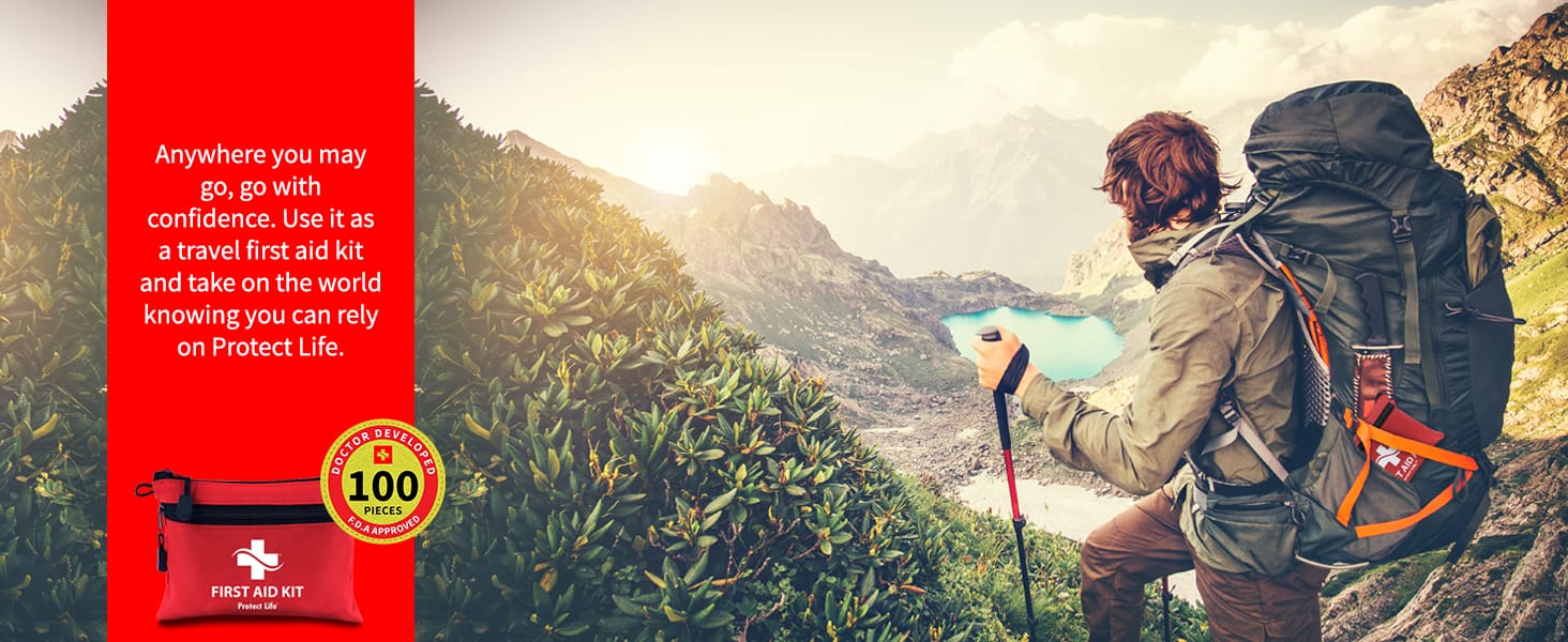 Protect Life 100-Piece Small First Aid Kit for Sports, Outdoors & Travel