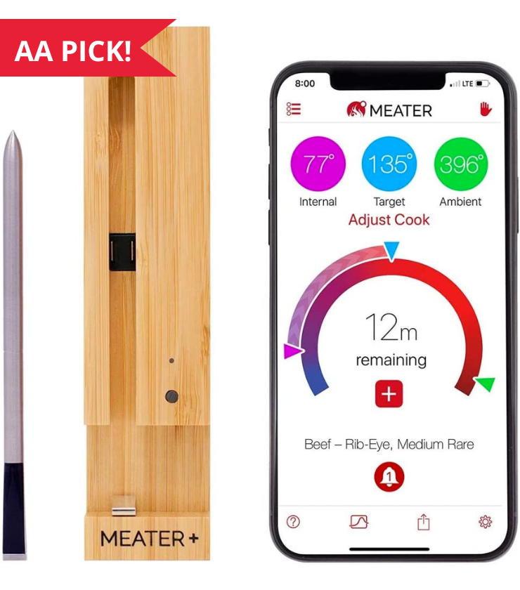 "I used the Meater+ on a pork shoulder and the probe and the App both worked flawlessly. I also used a wired probe to compare and both probes were giving the same readout. I really liked the alerts that the app gives for when to pull from the heat and when the resting period is over. My few years old Pit Boss does not have WiFi, so this gives me peace of mind that I was able to watch football, or mow the lawn without worrying if my smoker was staying up to temperature. The probe measures both the meat temperature and the ambient temperature in the smoker." Amazon Review by Jason E.
