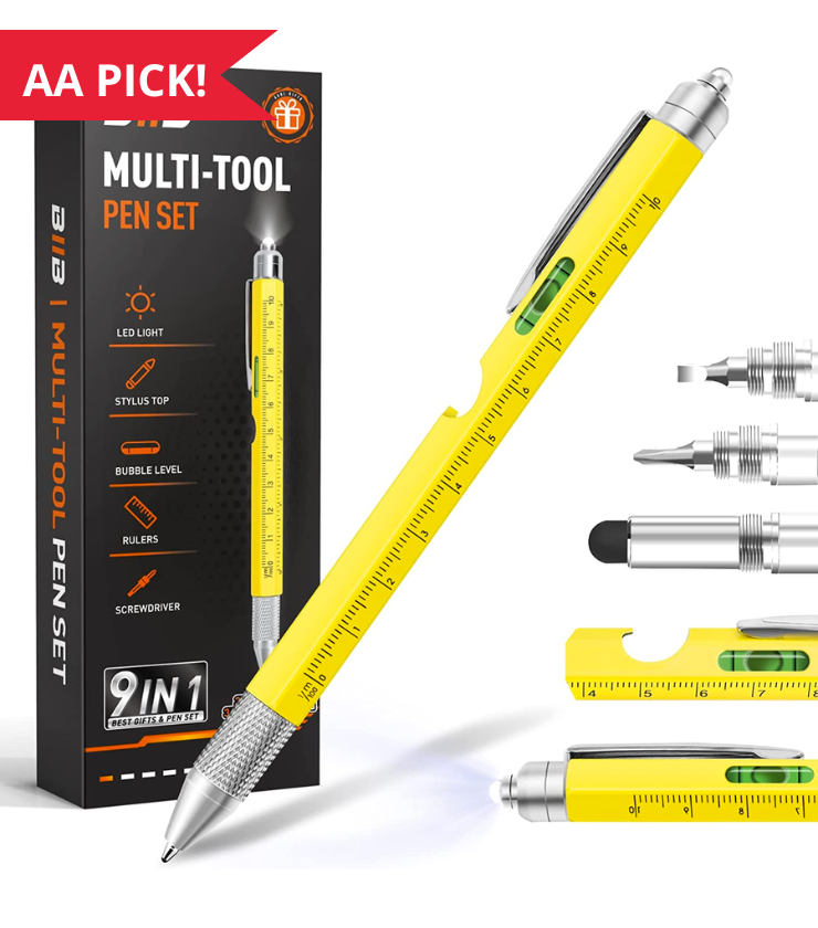 Designed by a gadget enthusiast, this compact and sturdy multi-functional tool pen is here to make your building, woodwork or gardening projects easier. This "pen" contains a level, an LED flashlight, a ruler (in/mm), touchscreen pen, twist ball point pen, bottle opener/phone holder, 2.5mm Phillips screwdriver and 2mm flat-head screwdriver. A must for the gadget geek in your life!