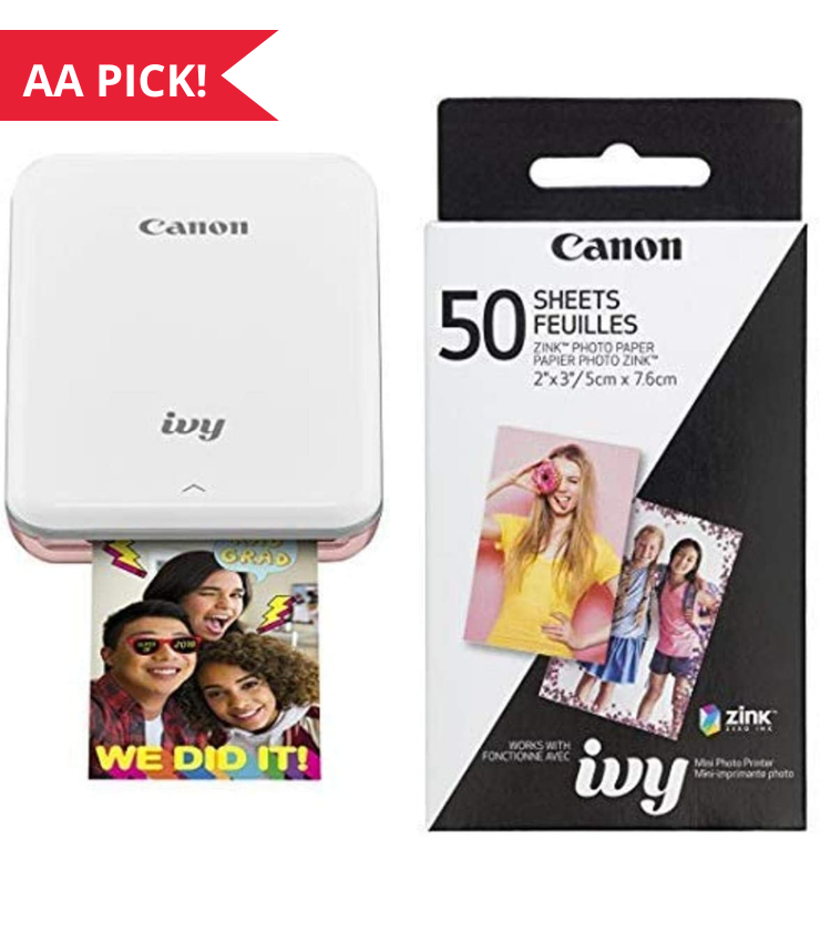 The Canon IVY Mobile Mini Photo Printer is a great way to take pictures on the go! You can print 2 inch x 3 inch photos with peel and stick backing, which means they'll be super portable. The resolution per inch (dots) measures at 314x400 - perfect for any social media account or email newsletter that needs some added spice.