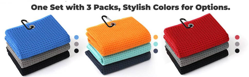 MOSUMI 3 Pack Golf Towel for Bags with Clip and Microfiber Waffle Pattern