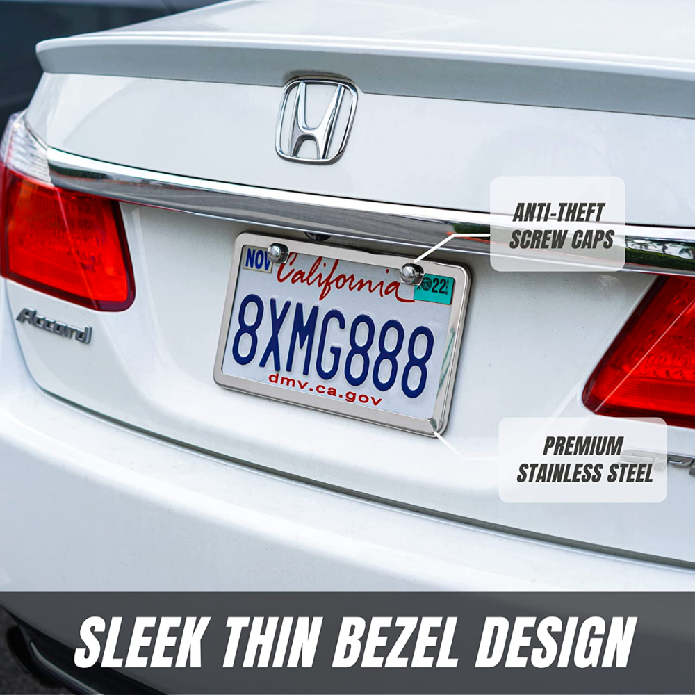 2 Pack Chrome License Plate Frames, Universal Car License Plate Covers