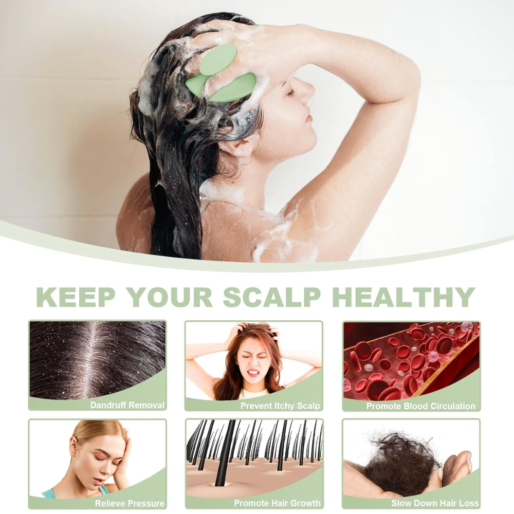 Scalp Scrubber with Soft Silicone Bristles for Hair Growth & Dandruff Removal