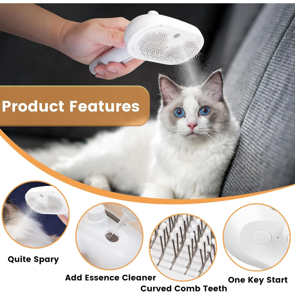 - Mist Functionality: The integrated mist feature helps to gently detangle and smooth your cat's fur, ensuring a sleek and shiny coat.