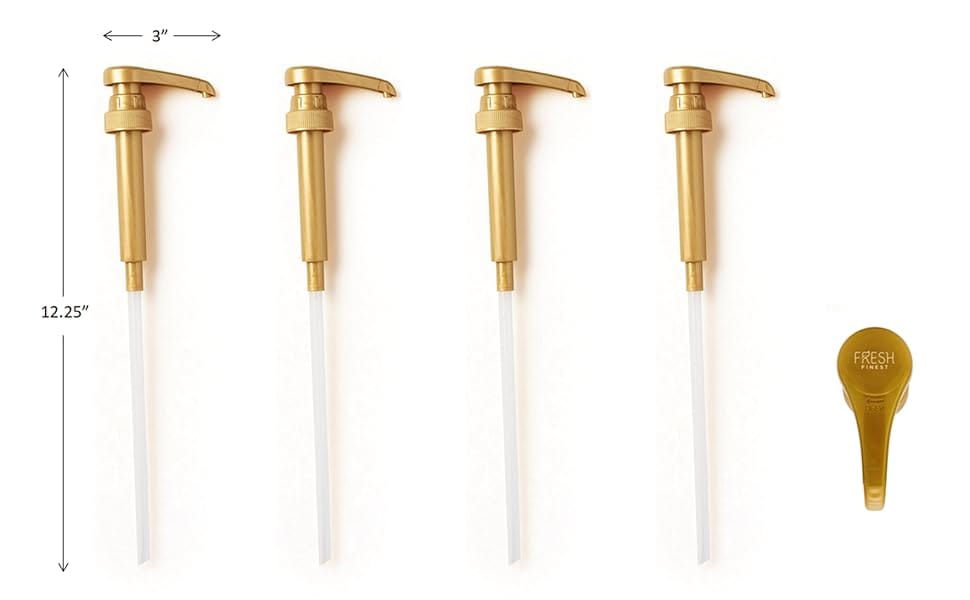 "These Syrup pumps are perfect for Skinny Syrup Bottles. I have a few brands of syrups and the pumps fit all of them nicely. They are a cute gold design that look beautiful on the bottles. The pump squirts perfectly without hesitation. Easy to assemble." Amazon Review by A