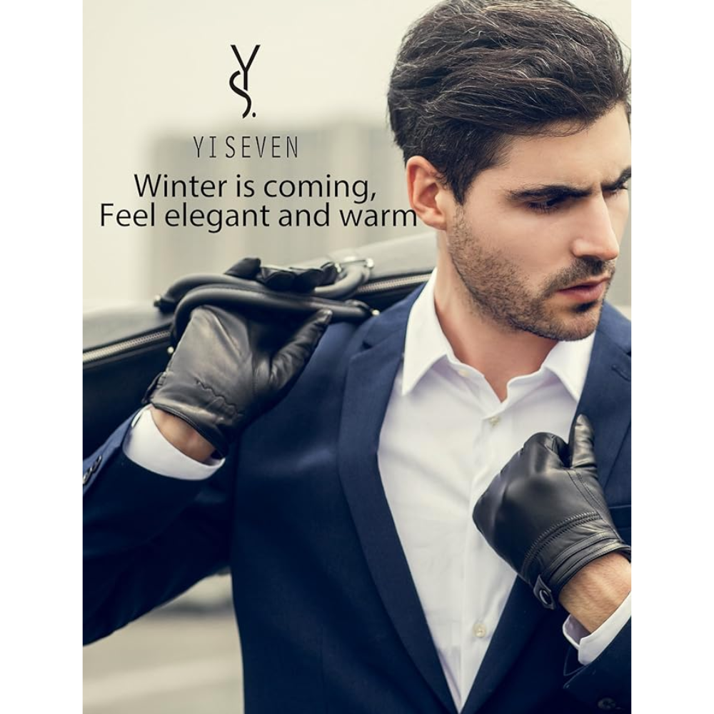 YISEVEN Men's Touchscreen Warm Fleece Fur Lined Sheepskin Leather Gloves