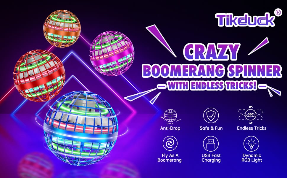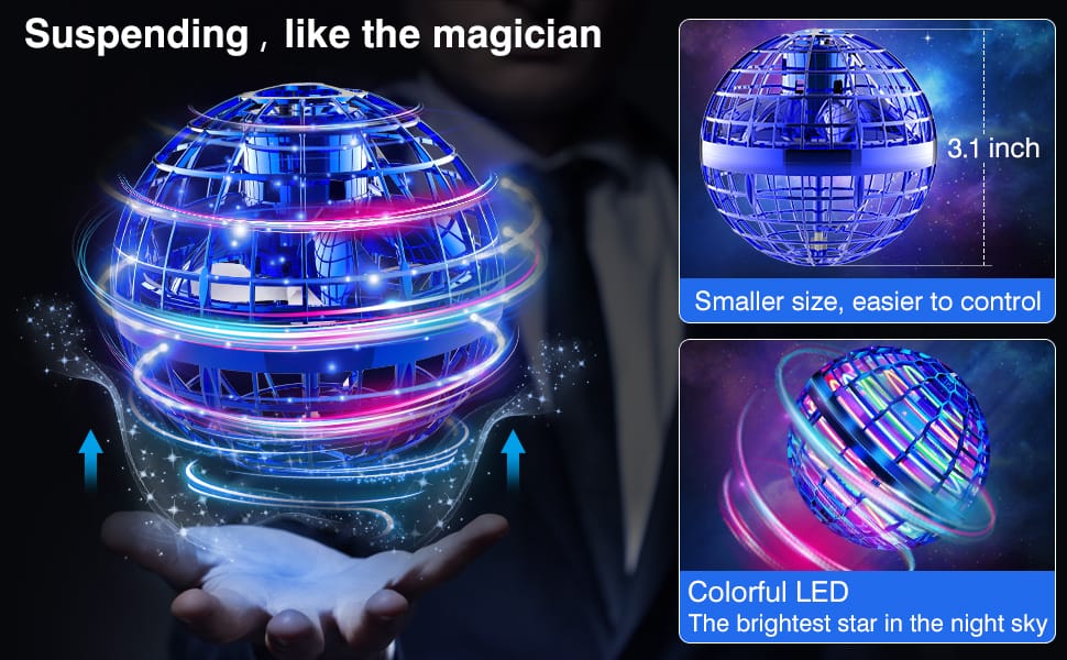 Experience the magic of the mini ball, a captivating gadget that lights up, spins, floats, and gracefully ascends through the air. Effortlessly control it with a simple wave of your hand, guiding it to fly directly to your target or return like a boomerang. Master the art of hovering on your hand, perform intricate turning flying skills, or invent your own unique flying patterns.