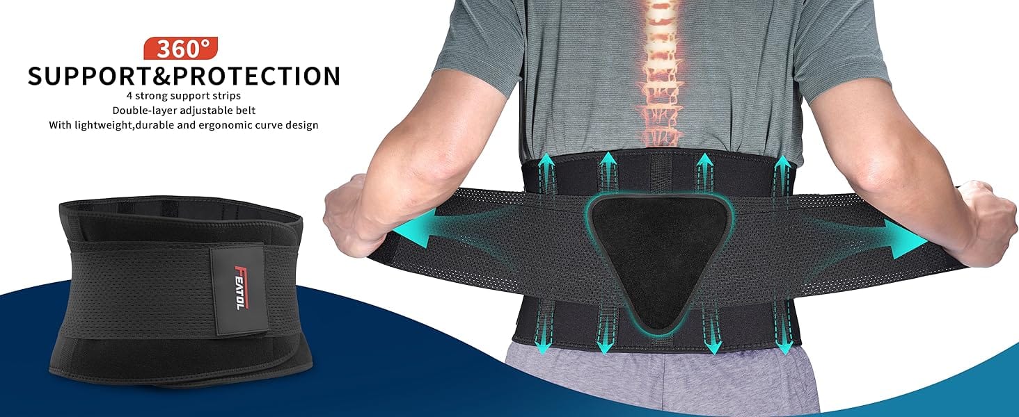 FEATOL's lower back belt feels good. It gives strong support. Four firm strips and a soft pad wrap all the way around you. Your back stays solid. This holds it true during any workout. It's perfect for lifting weights. Use it for gym training too. You will feel safe. You will feel strong.