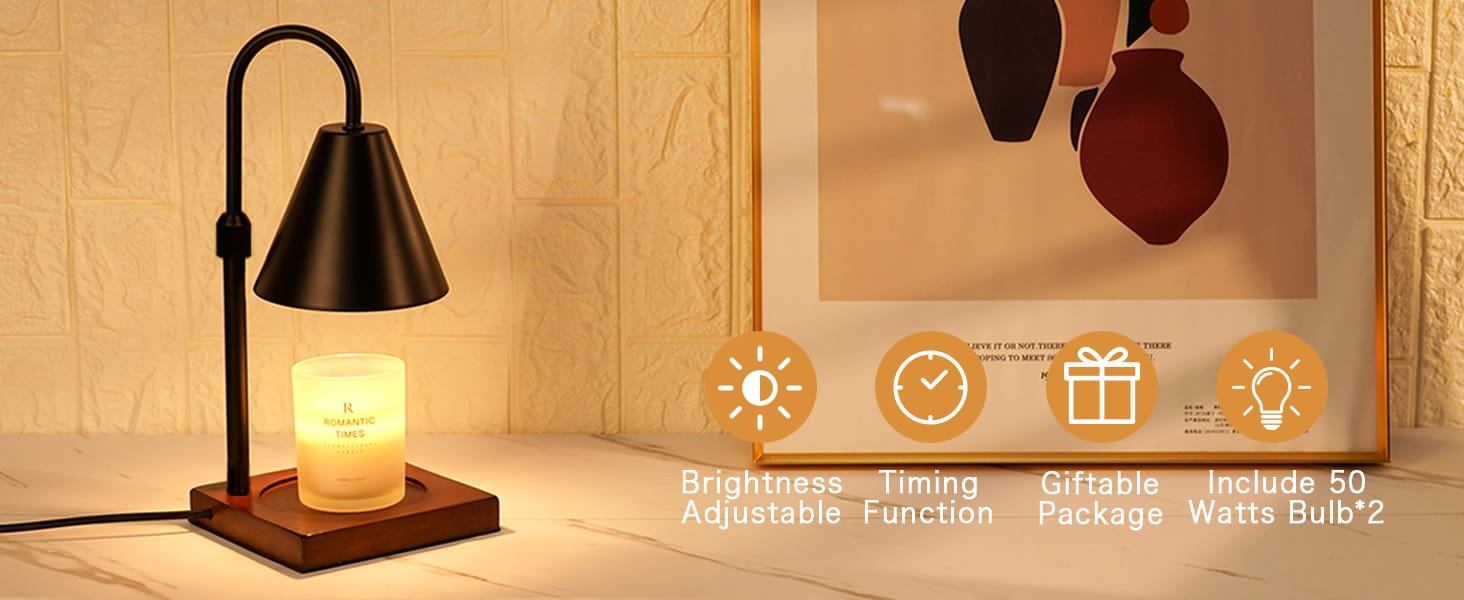 The candle burner lamp features a dimmable controller to meet different ambiance needs. It also includes a 2, 4, and 8-hour shut-off function. The brighter you set it, the faster the jar candles melt. Additionally, it serves as a beautiful piece of modern home decor.