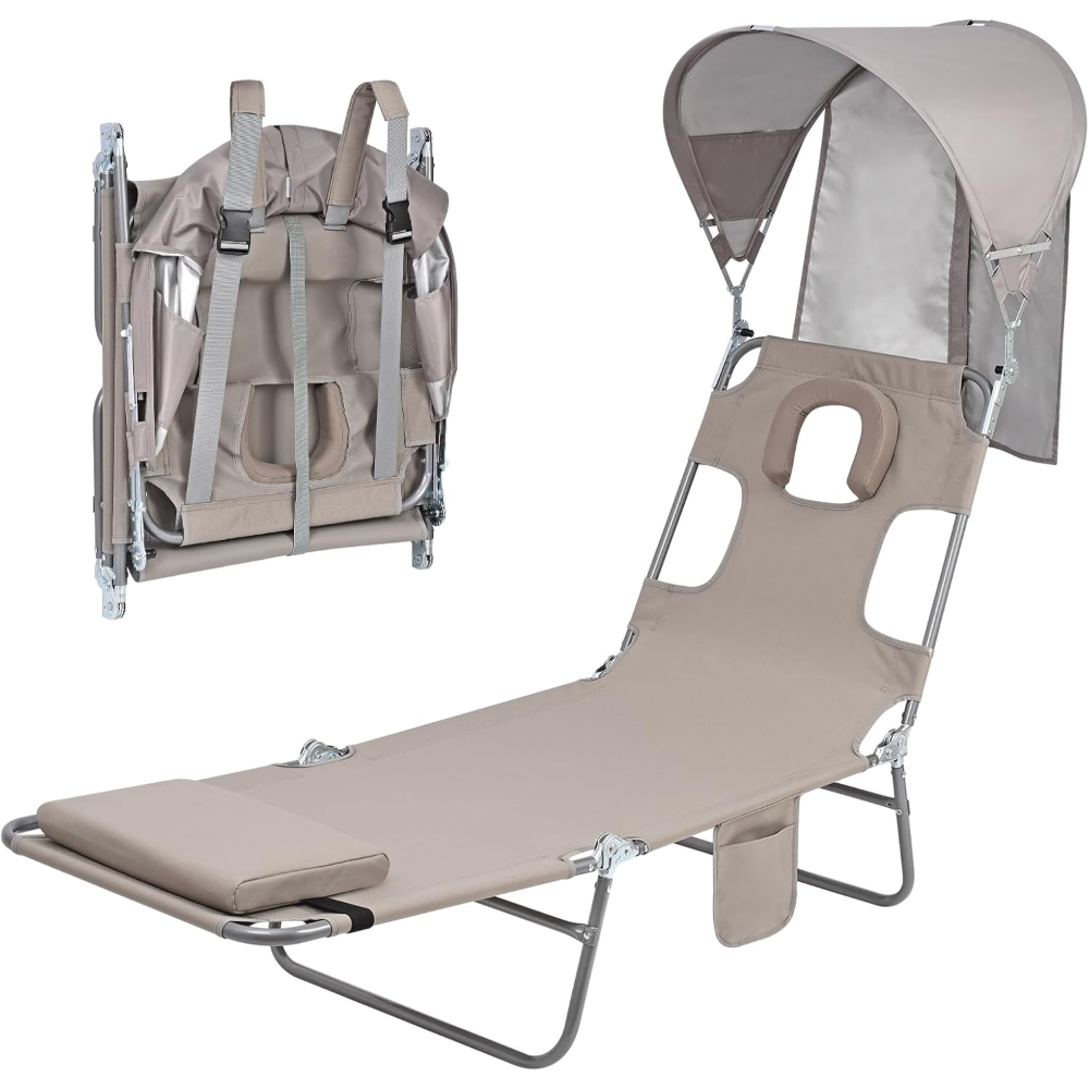 A tanning chair with a sun canopy keeps your face cool and shaded from strong sunlight. It blocks glare, making it easier to read or relax. The canopy offers UPF 50+ protection, which stops 99.5% of UVA and UVB rays. You can move it forward or back to follow the sun, so you don’t have to keep adjusting your position. This design helps you enjoy the sun safely and comfortably.
