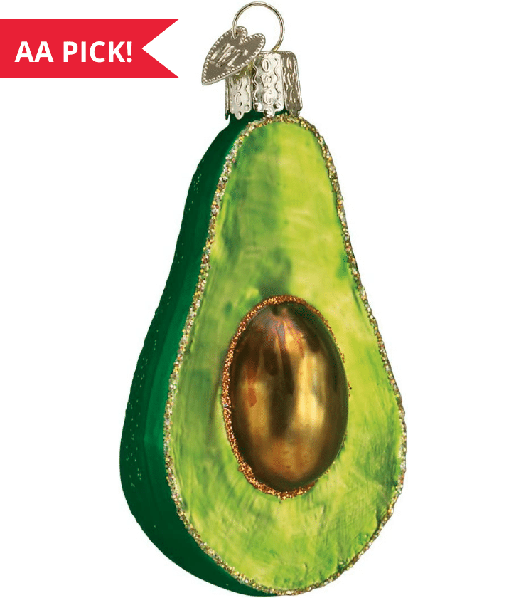 "I love this ornament! It was a gift to my step-dad who eats avocados almost everyday. He is a stroke victim from a pretty young age (for no medical reason that could be found) and he tries to make good choices about supplements and other real foods that are good for the body. Okay, so, it's just an avocado but it is seriously gorgeous, looks homemade/blown glass and looks like something you might find in a vintage Christmas shop. Have an avocado lover or hater in your family? This is an awesome gift! I can't say enough about how pretty it is and I was rather stunned when I first saw it. Don't hesitate!" Amazon Review by Karen