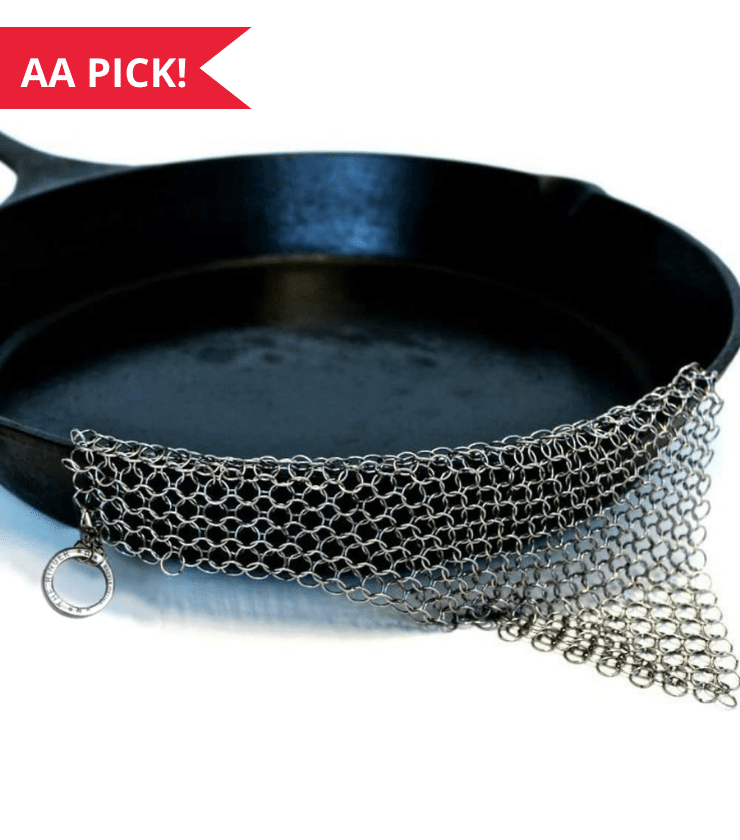 "This is seriously the most versatile kitchen tool. It's not just for cast iron. Old food dried on plates from last night? Gone in seconds. Wine stains at the bottom of the glass? No need to soak or try to get your hand in there. Just swish this thing around inside with some water and it's gone. Same with anything stuck at the bottom of glasses or mugs? Worried about scratching those fancy plates with the intricate designs or gold trim? Don't worry about it. Each link in the chain is smooth enough to not scratch any of that while still removing food. Makes loading the dishwasher take half the time. No more waiting for dishes to soak overnight to get that tough baked on stuff. It cuts right through it. And it's easy to clean to. Rub it in your hands with some soap and water and any gunk stuck in the chains comes right out. I don't know how I lived without this. It's probably saved me $100 on sponges." Amazon Review by Joseph