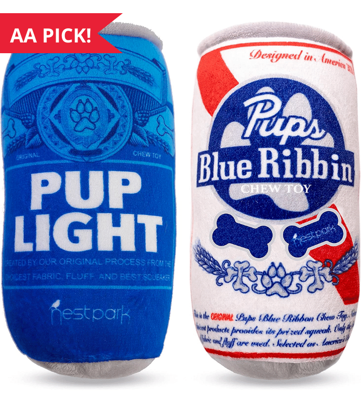 These fun and festive Pup Light and Pups Blue Ribbon Dog Toys are the perfect way to get your best bud involved in your next party! Never drink alone again with these hilarious plush squeaky toys, each of which has a squeaker inside for hours of entertainment. These make a great gift for any dog lover or at a dog birthday or puppy party! Each toy is 5.5 inches long, making it perfect for small, medium, or large dogs of any gender. Get your pup in on the fun today!