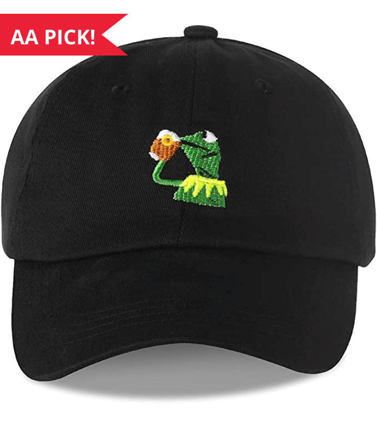 Kermit the Frog is one of the most beloved characters in pop culture history. Now, you can show your love for this iconic frog with this Kermit The Frog Sipping Tea Logo Baseball Cap. This high-quality baseball cap is made of 100% cotton and features Kermit sipping tea on the front. The unisex design makes this baseball cap a great choice for both men and women. The adjustable metal buckle back closure ensures a great fit for all head sizes. Whether you re hitting the gym, going for a run, or just hanging out with friends, this Kermit The Frog Sipping Tea Logo Baseball Cap is a great way to show your love for everyone's favorite frog.