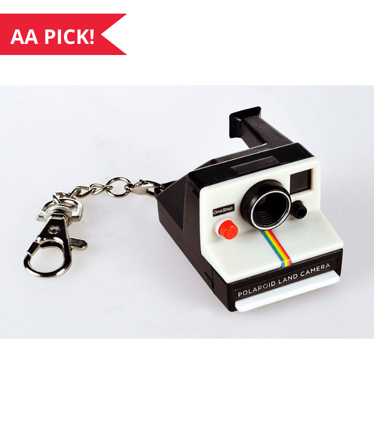 The World's Coolest Polaroid Camera Key Chain is the perfect way to take your style up a notch. This cool keychain, that is a replica of the original Polaroid, has sound, simulated film, and a clickable red shutter button. It's artsy chic and retro! The miniature Polaroid camera is the 'insta-photo' before the 'gram. It makes for a great conversation starter!