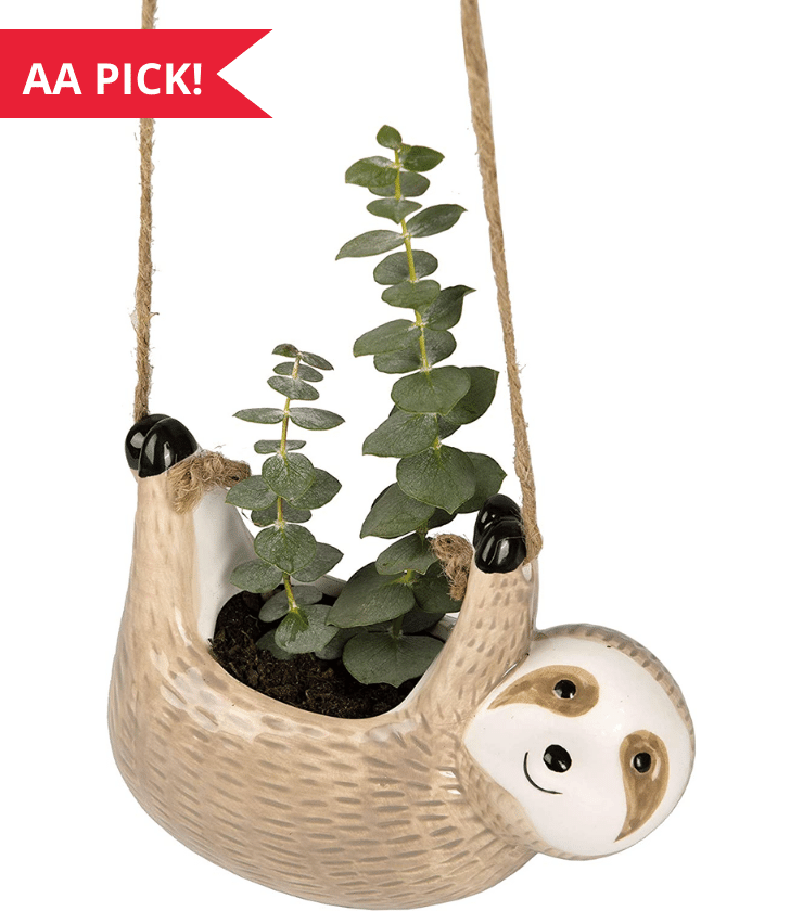 Who could resist this little guy? The ABETREE Sloth Gifts Ceramic Sloth Hanging Planter is the perfect addition to any plant-lover's collection. This sweet and lazy sloth-shaped planter is perfect for hanging your favorite succulents in. The ceramic material is high quality and sturdy, while the sloth's cute face is sure to bring a smile to your face every time you see it. Give your plants a home that's as unique as they are with this one-of-a-kind hanging planter.