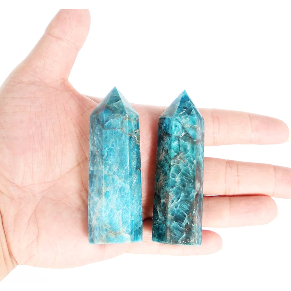 Made from polished stone, with a point at the end and shape in 6 facets, these wands are carefully crafted by hand to provide a smooth, pleasurable experience when held. Approximately 2.8''-3.1'' in length and 0.8'' to 1'' in width, these wands are perfect for keeping in your purse or pocket for on-the-go relaxation. Blue apatite is known for its calming and centering properties, making it the perfect stone to help ease anxiety and tension. Add these beautiful Blue Apatite Crystal Wands to your collection today and enjoy the peace of mind they provide.