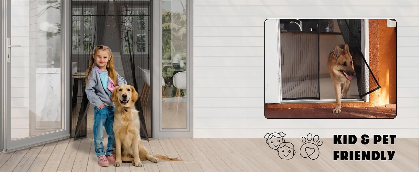 Kid and Pet Friendly: The magnetic screen door is easy for children to use and lets pets come and go as they please, functioning almost like a screen door with a built-in doggie door.