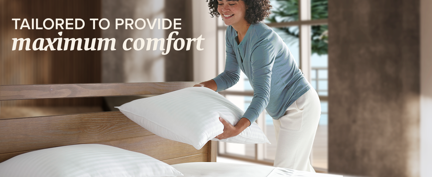 Our bed pillows offer luxury and easy care. They are machine washable, keeping their soft feel. The pillows stay fresh and firm each night. Pick from soft or firm pillows for the best comfort.