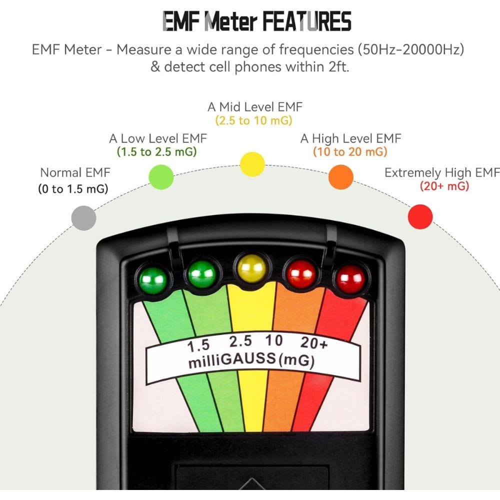 - Accurate EMF Measurements: The device reports EMF measurements in the 5 milligauss range, ensuring precise detection.