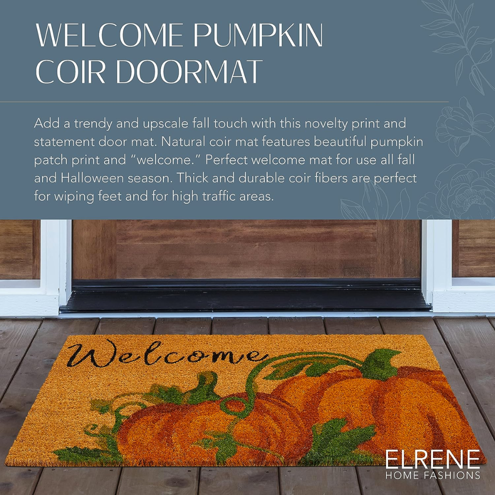 Welcome your guests with a smile and a touch of farmhouse charm with the Elrene Home Fashions Farmhouse Living Coir Outdoor Doormat. This cute and trendy doormat features a welcoming message and adorable pumpkin graphics, sure to brighten anyone's day.