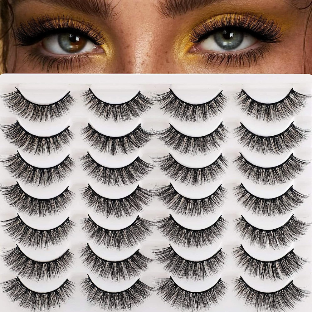 False Eyelashes 14mm Faux 3D Mink Lashes Natural Look Fluffy Cat Eye Wispy Lashes Pack by Kiromiro