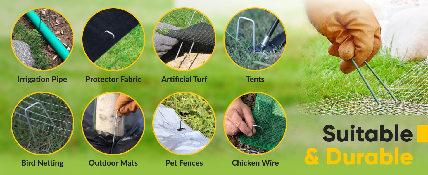 - Landscape Fabric Installation: Secure your landscape fabric with ease, preventing weeds from penetrating your garden beds.