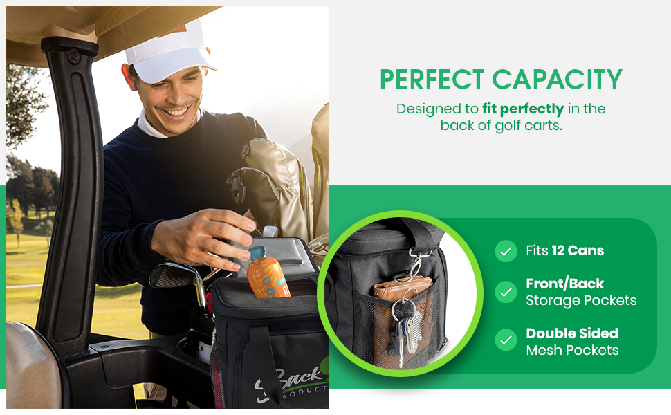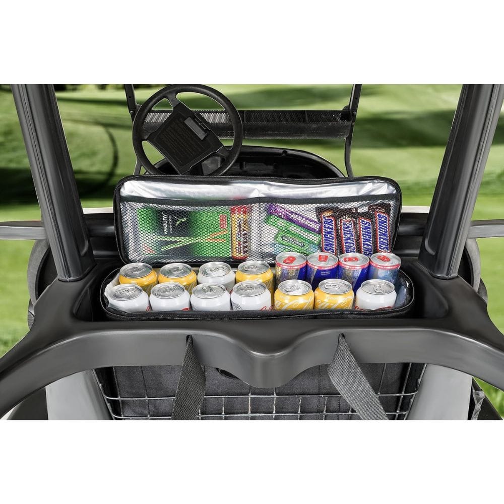 "This cooler is absolutely perfect for any golfer. It fits in the space behind the seat perfectly. It holds plenty of "refreshing beverages" for a round of golf, and the additional space with the mesh is a wonderful addition that most coolers don't have. It's nice to put a candy bar, a pack of crackers, or some beef jerky there so I can snack a little while on the course." Amazon Review by Tassy McCormick