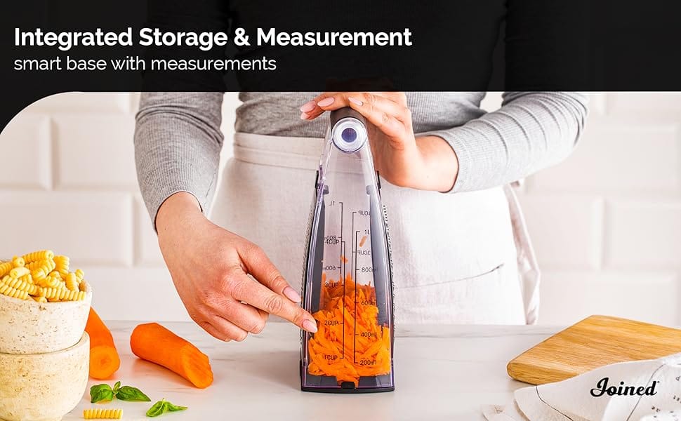 This isn't just a food shredder and peeler. It's a multitasking kitchen essential. You get three different grating surfaces. There's a handy removable non-slip base. It even features two measurement units. The thick handle feels great in your hand. An extra vegetable peeler is included too. This gadget simplifies your cooking. Use it as a ginger grater. It's perfect for shredding carrots. Grate parmesan cheese with ease. It handles all sorts of tasks.