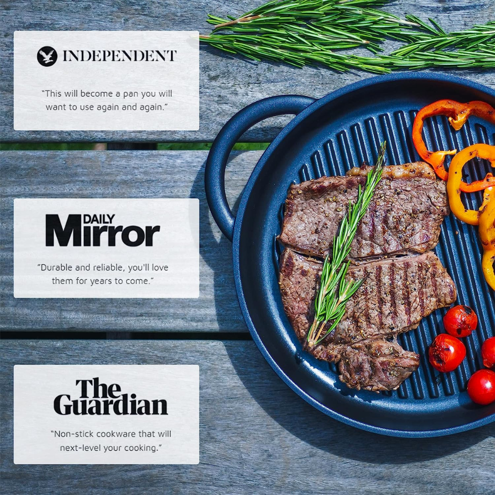 Get that perfect sear and those coveted grill marks every time with its raised ridges. Plus, with its riveted stainless steel handles, you can confidently handle your grilling masterpiece like a pro.