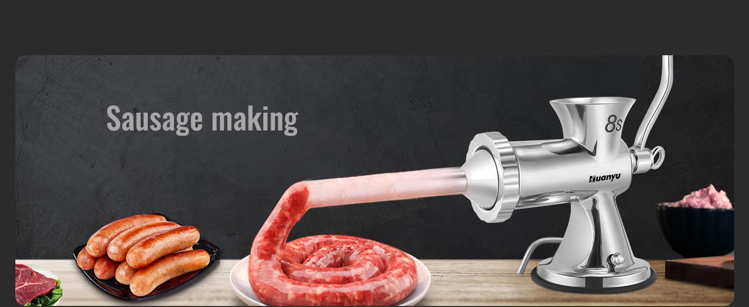 Our Multifunctional Manual Meat Grinder is designed to handle a variety of tasks. It efficiently grinds meat and vegetables with low water content, such as dried peppers, minced garlic, and fresh chili peppers. Additionally, we provide sausage-making accessories, making it convenient for you to prepare homemade sausages.
