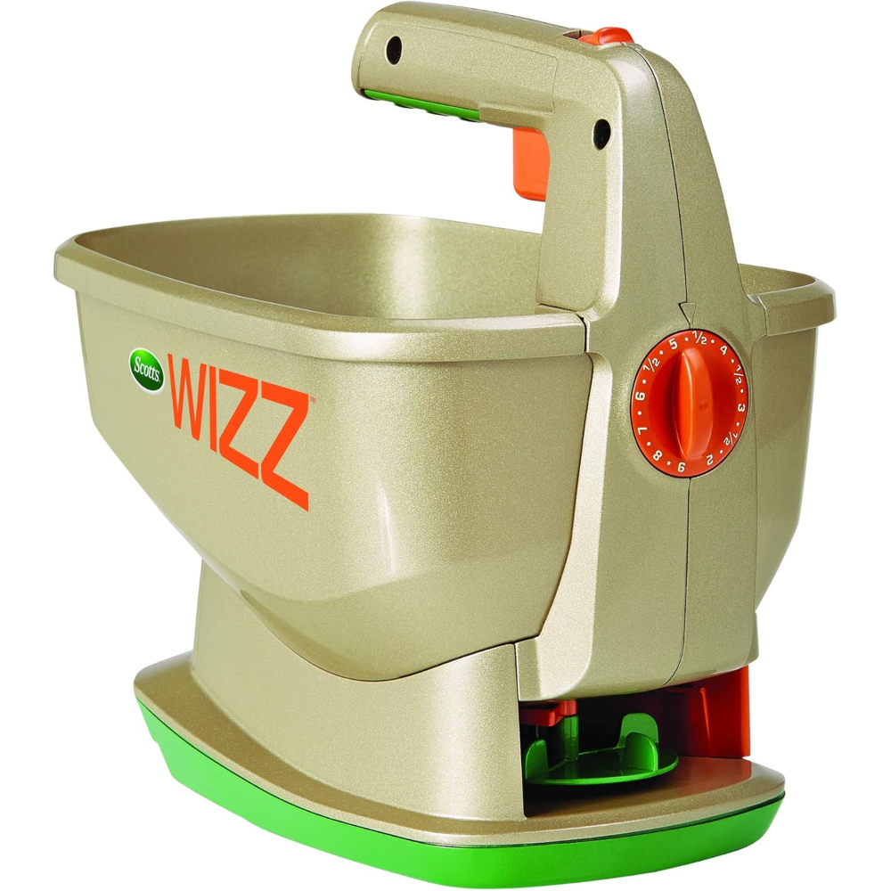 This model offers variable speed settings. It has a large capacity hopper and is lightweight. The Scotts Wizz is ideal for small to medium size yards. Its price point is budget-friendly.