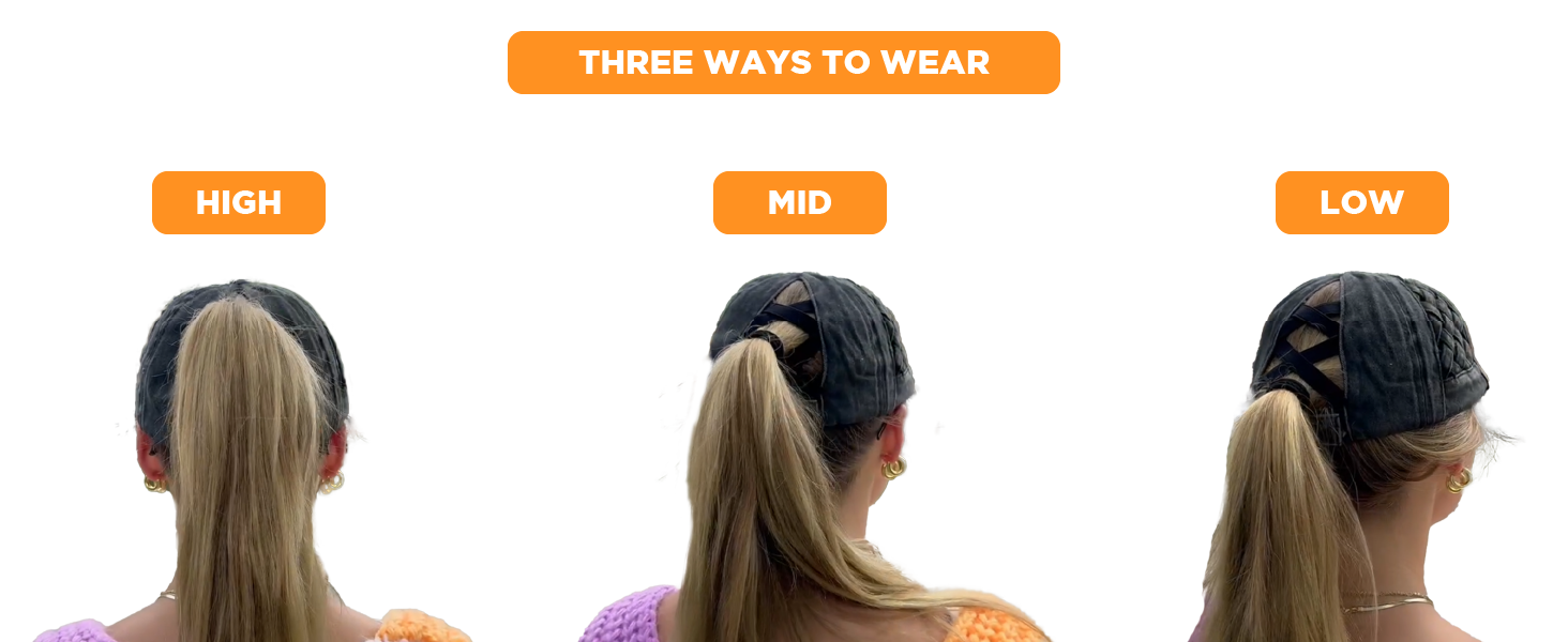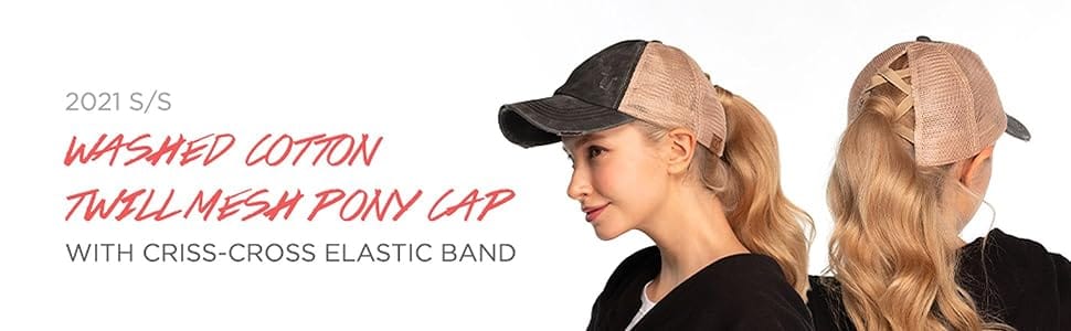 Our distressed, washed hat offers a vintage aesthetic that stands out. The back features criss-cross elastic bands, providing a ponytail hole that looks fantastic with or without a ponytail. Choose from three different ponytail holes for a low, middle, or high ponytail/messy bun. This unique and stylish design ensures plenty of versatility.
