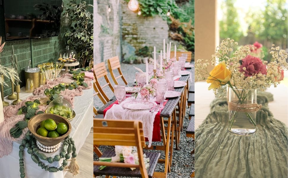 In addition to being affordable, cheesecloth runners are also reusable. With proper care, they can be used for multiple events, further stretching your decor budget. This combination of affordability and durability makes cheesecloth table runners a smart investment for anyone looking to enhance their table settings.