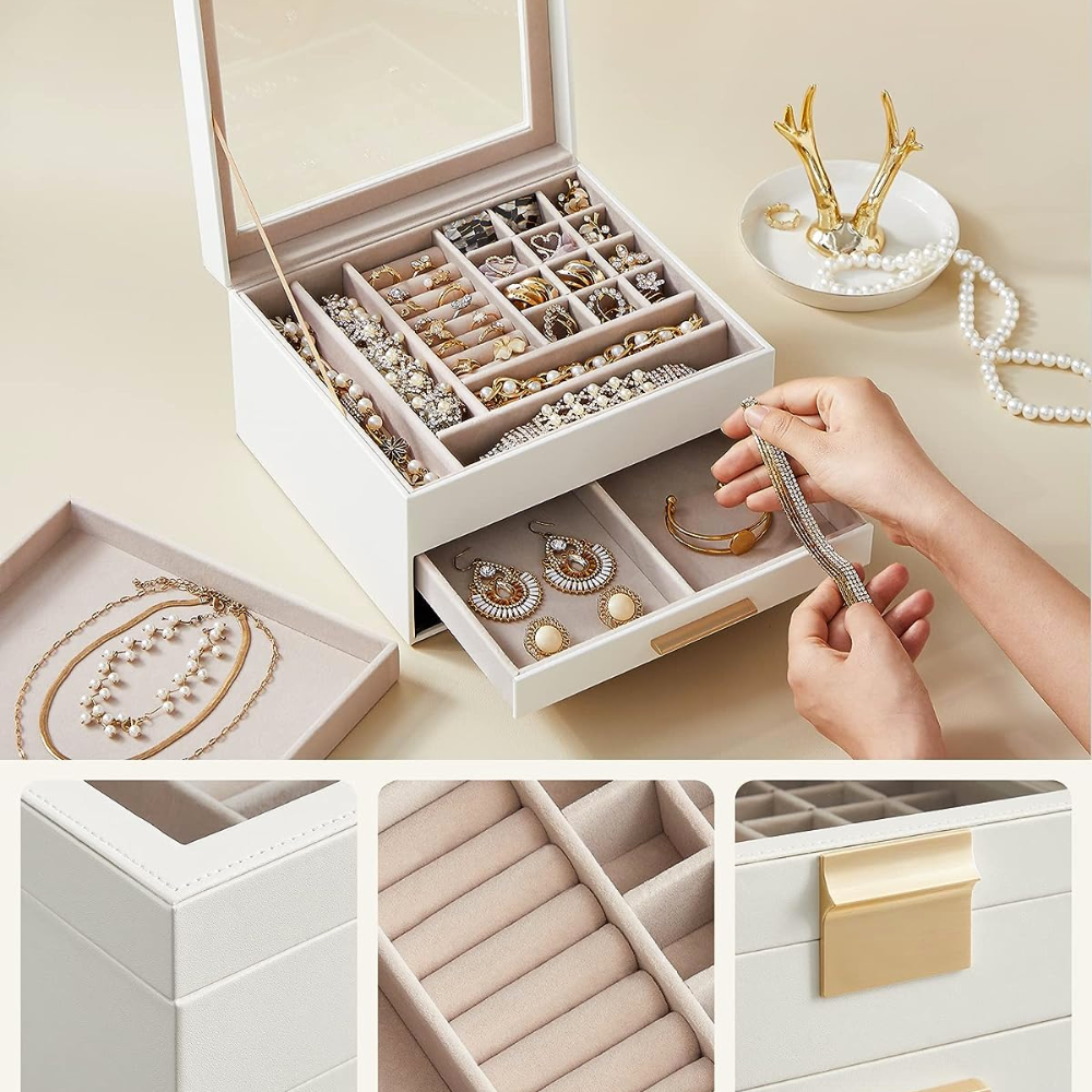 Introducing the SONGMICS Jewelry Box with Glass Lid – the perfect solution to keep your jewelry collection organized, accessible, and elegantly displayed.