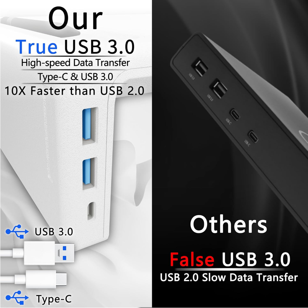 The Geckostroll monitor riser has ports for easy connections. It features one USB 2.0 port and three USB 3.0 ports. These let you hook up many devices at once. There are also two PD/C ports for even more options. Now you can move data and connect devices with ease.