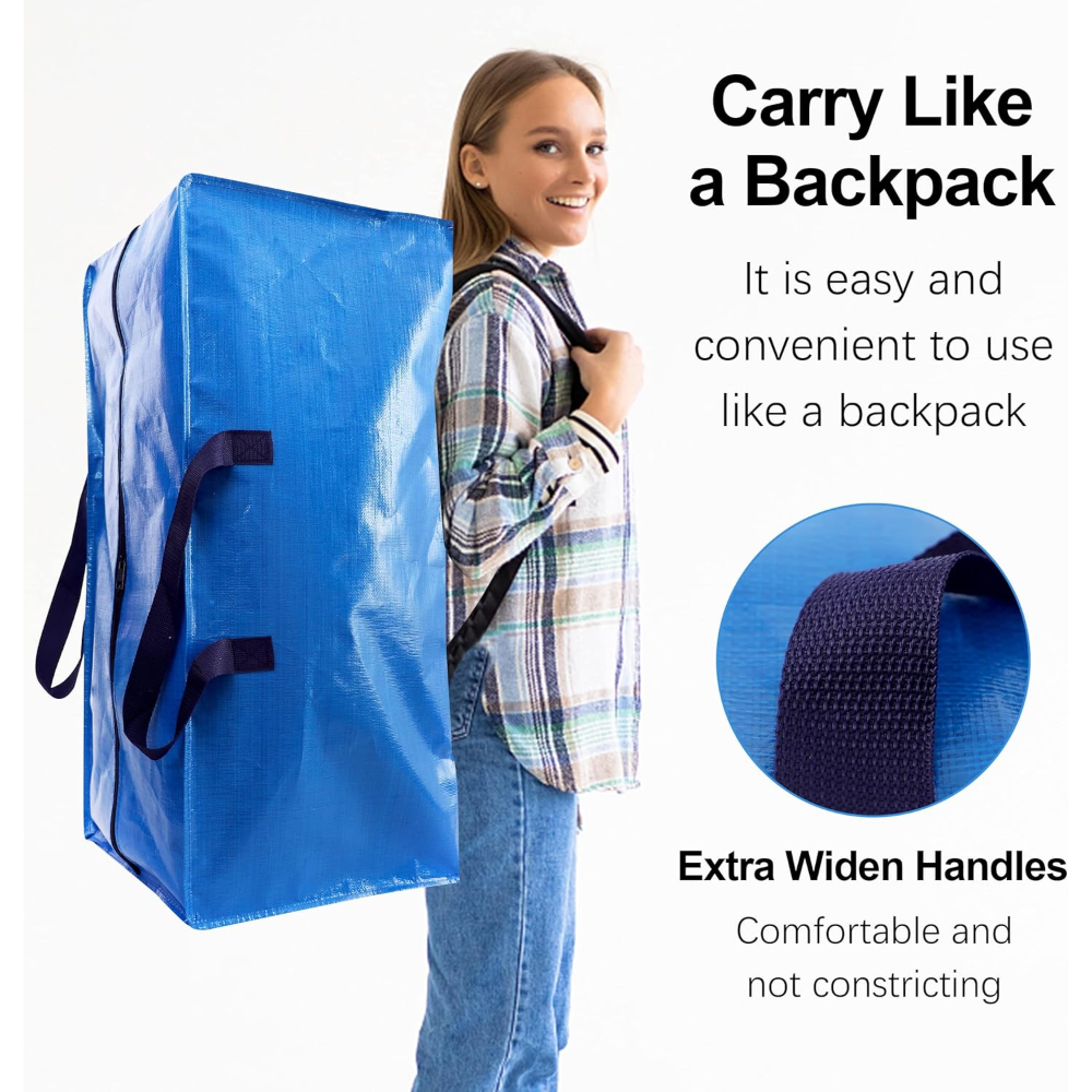 Heavy Duty Extra Large Moving Bags W/Backpack Straps - Strong Handles & Zippers